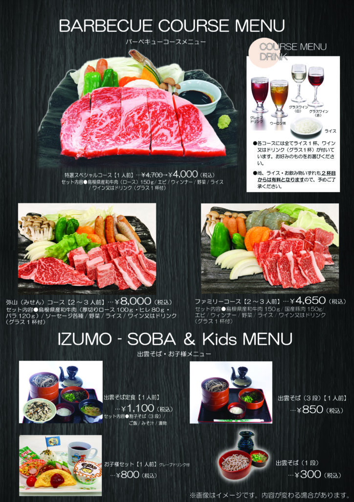 バーベキューハウス「シャトー弥山」のメニュー内容2025.03.31