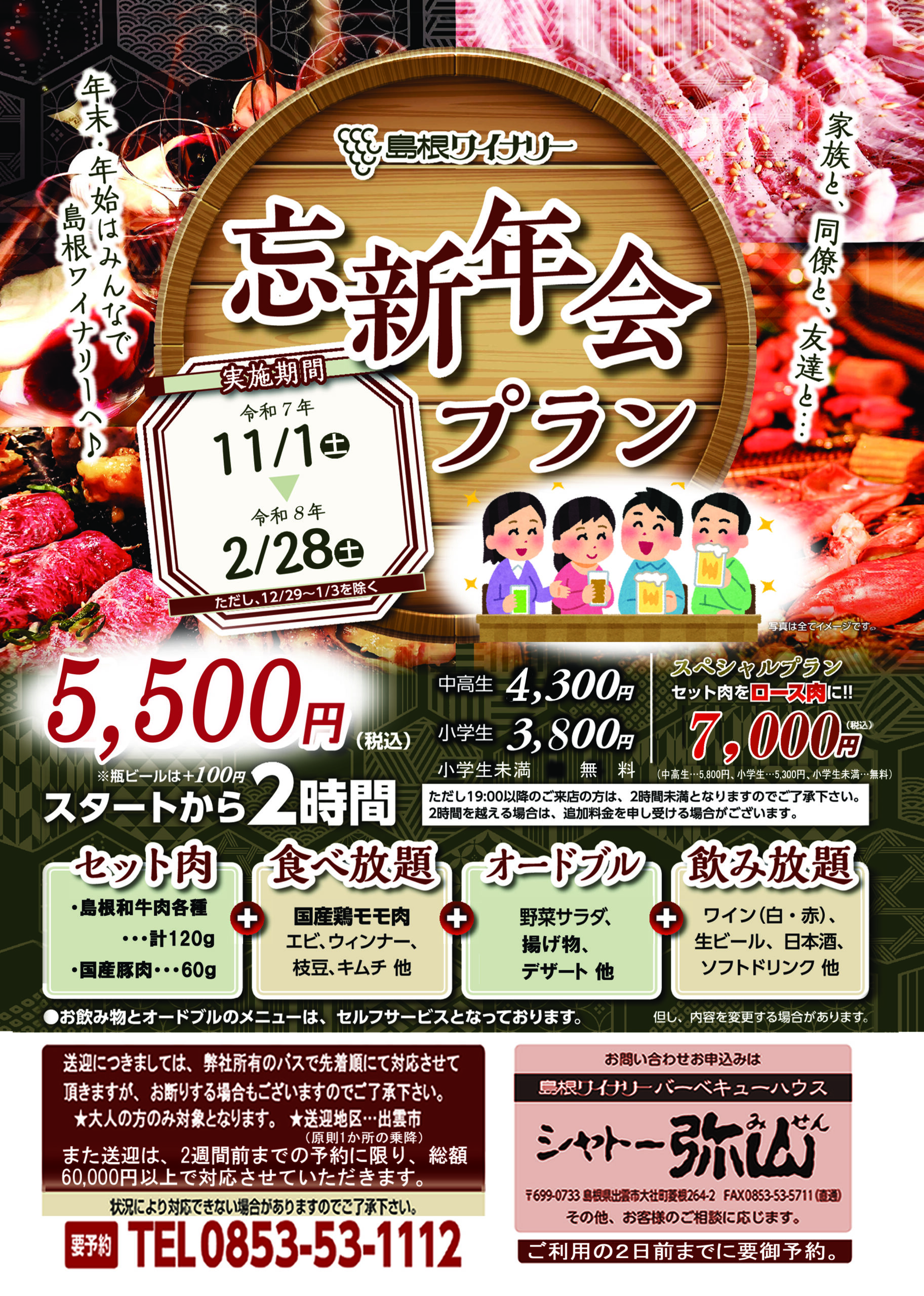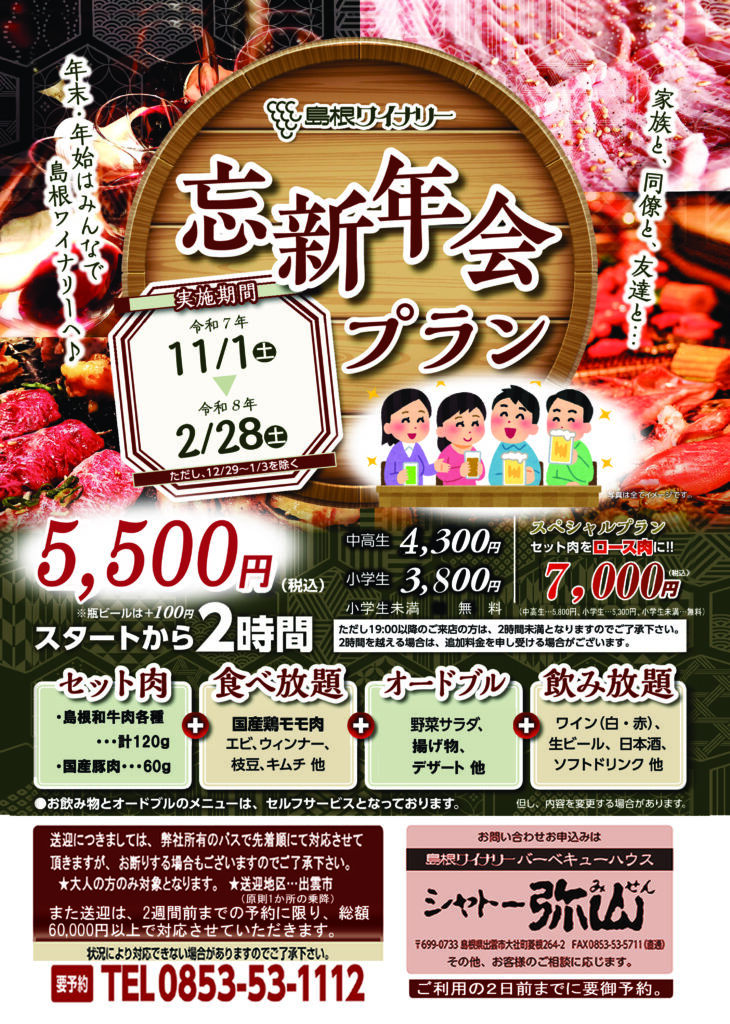 島根ワイナリー忘新年会プラン【要予約】ご利用2日前までに