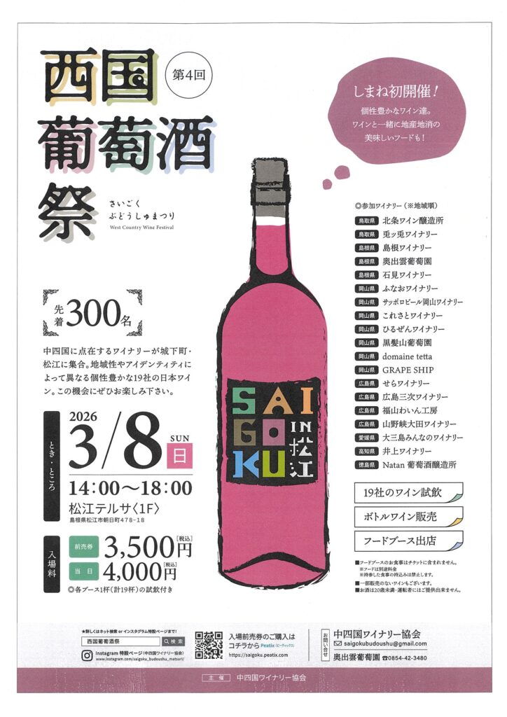 【第4回西国葡萄酒祭】に島根ワイナリーも参加します。