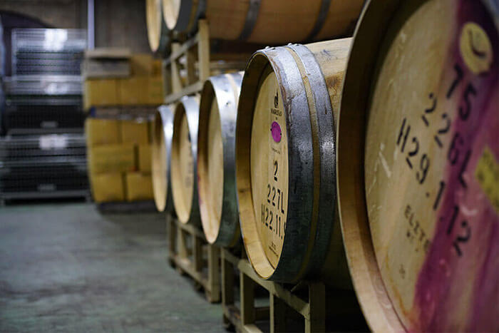 収穫したブドウは小仕込みタンクで丁寧にじっくり醸します。この良質な地で育ったブドウの個性や良さを最大限引き出すように、ナチュラルなワイン造りに努めています。